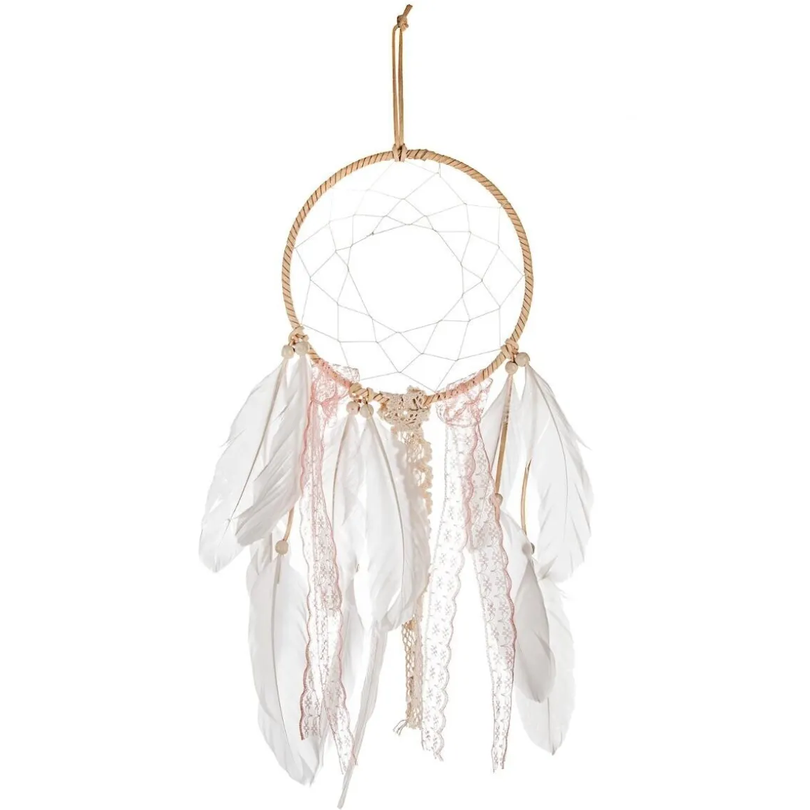 Les petites filles adorent tout ce qui ressemble de près ou de loin à de la dentelle et à des plumes. Ça tombe bien. Cet attrape rêves enfant en a partout.