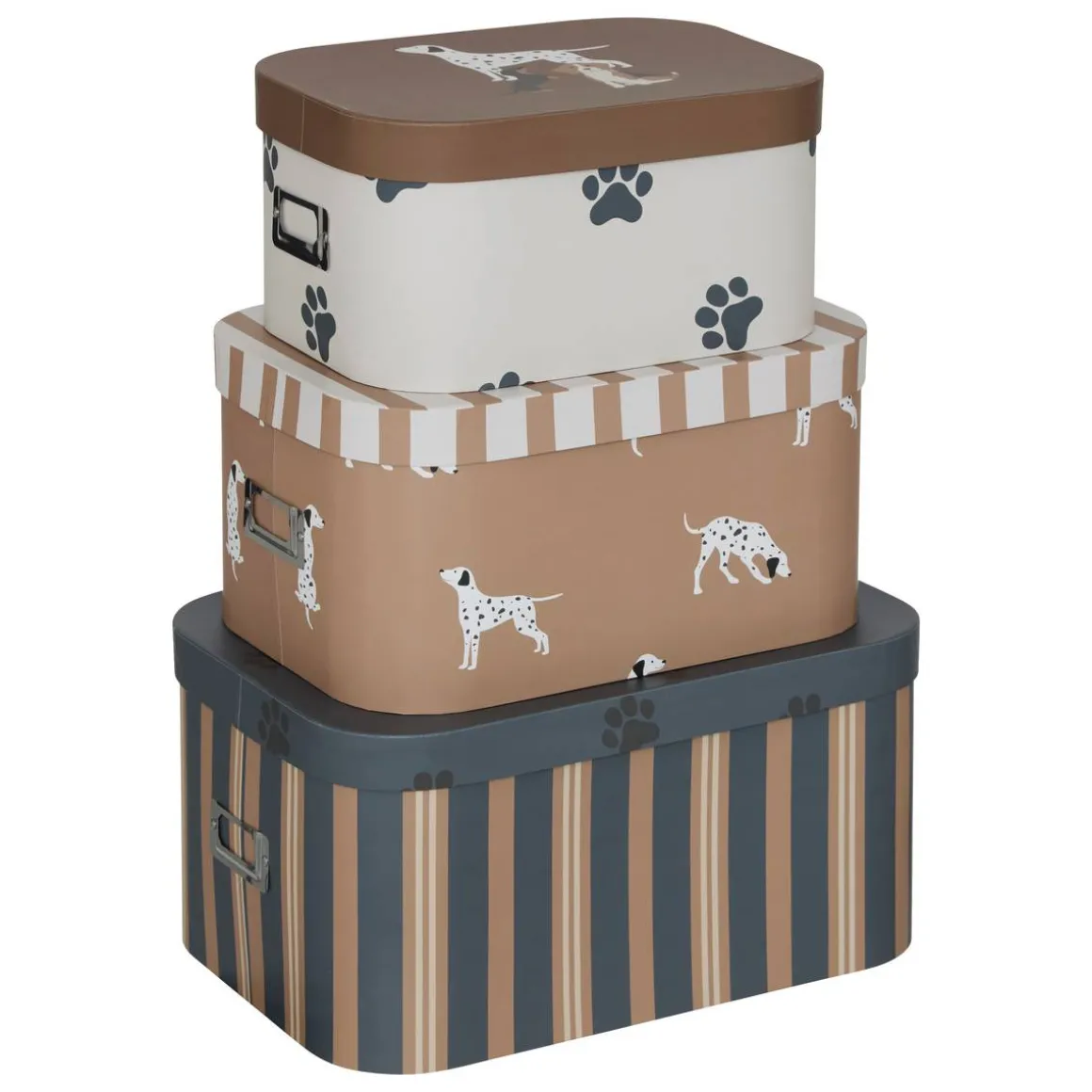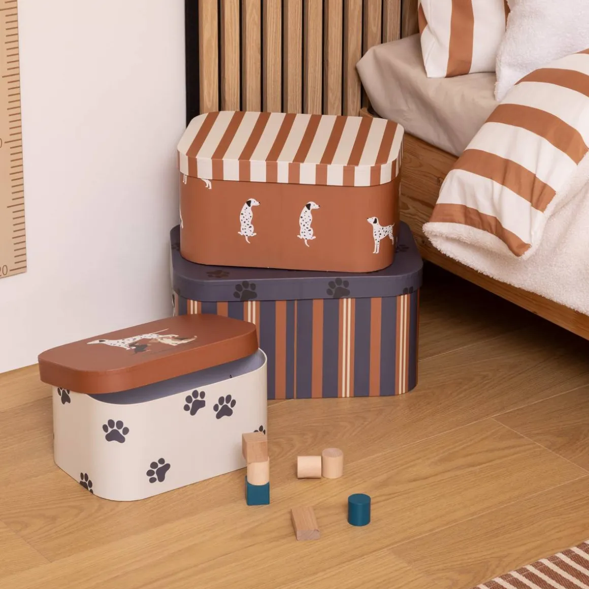 Malin et décoratif, le set Scott Atmosphera for kids est composé de 3 boites de rangement de dimensions complémentaires. Imprimées de rayures et de motifs représentant un chien ou des empreintes de pattes, elles offrent un design tout en rondeur. Idéales pour organiser le rangement des jouets et petits objets, elles peuvent être empilées sur un meuble et elles déposeront une touche ludique dans l’univers de votre enfant. Complétez avec des accessoires Atmosphera for kids déclinés sur ce thème pour harmoniser votre déco !