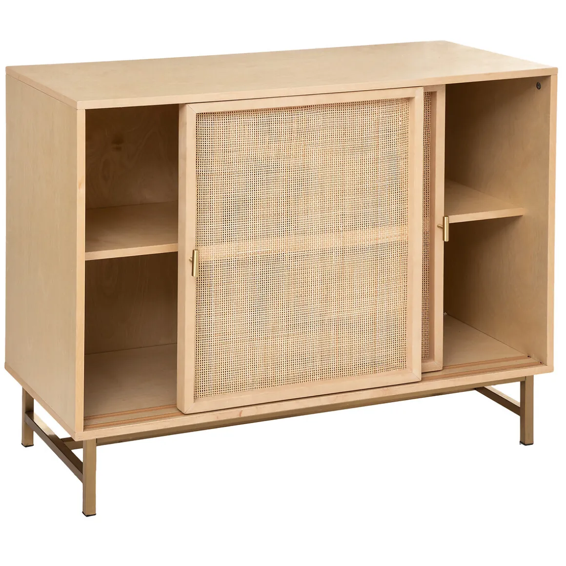 Le buffet « Rayo » dispose de deux portes coulissantes afin que vous puissiez accéder facilement à son contenu. À l’intérieur, vous aurez de quoi ranger avec ses quatre cases spacieuses. Sur le dessus, vous pourrez laisser libre cours à votre créativité en disposant de beaux objets déco.
