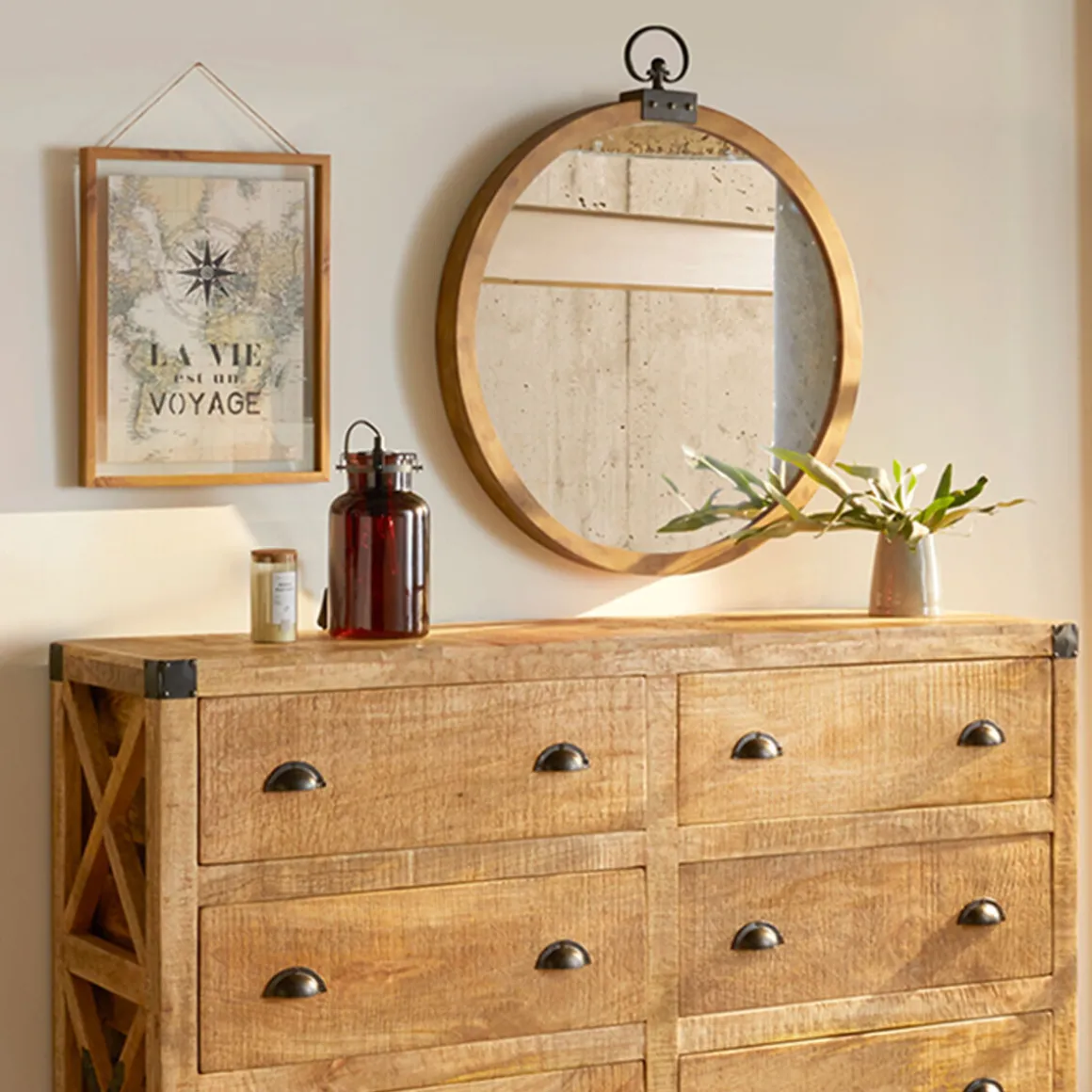 Pour créer une décoration sur le thème du voyage, vous pouvez ajouter des accessoires de navigation en laiton, des noeuds de marine…