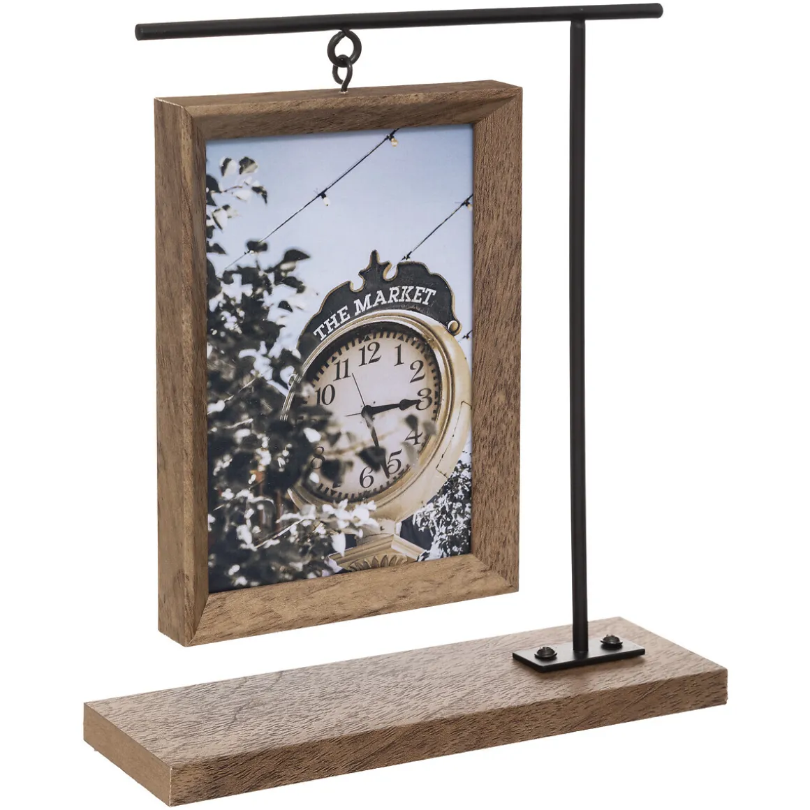 Ce cadre photo en bois est suspendu à une potence en métal, elle-même fixée sur un large socle en bois. Dans un style très authentique, il vous permettra d’exposer une photo au format 10 x 15 cm. Élément de déco à part entière, il se distingue par un mix de matières totalement intemporel.