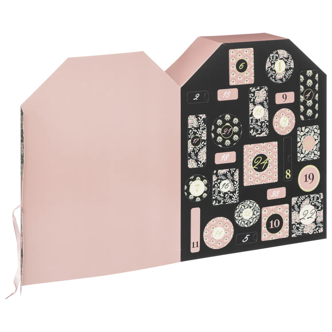 Ce calendrier de l’avent se distingue avant tout par son imprimé romantique! A l’ouverture de ses 24 cases, vous découvrirez des pompons en tissu, des bougies parfumées, des boules de Noël avec des fleurs séchés, des rubans satinés, des bougeoirs et des portes-étiquettes… Tout le nécessaire pour décorer votre intérieur à l’approche des fêtes!