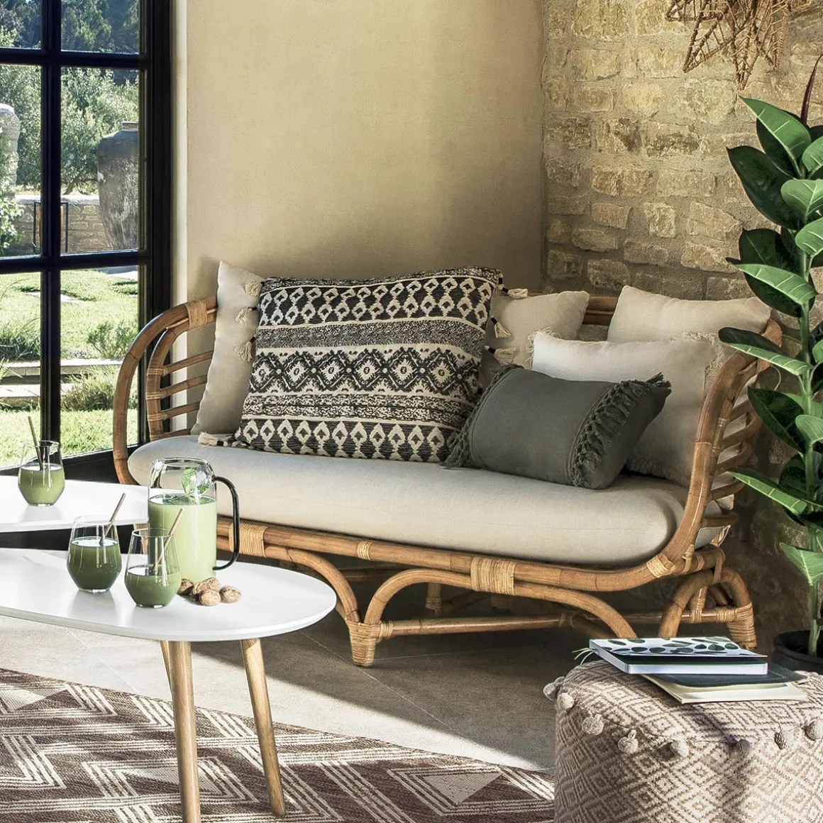 Avec ses accents d’ailleurs, mariez le canapé en rotin « Farah » à une décoration murale Atmosphera d’inspiration naturelle.