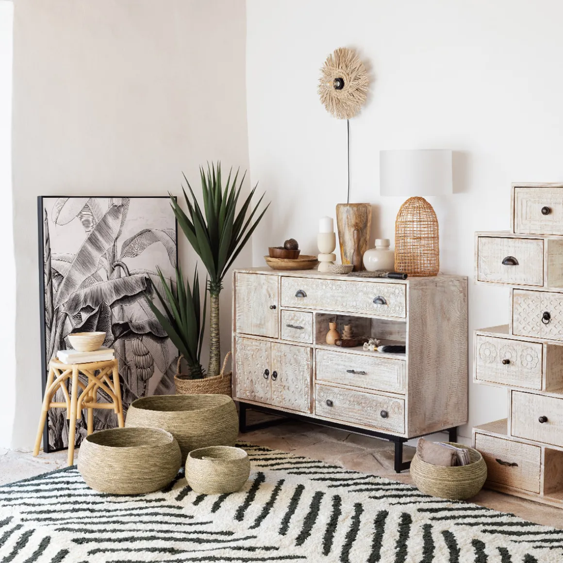 Disposez quelques statues, plantes ou sculptures sur chacun des tiroirs. Dépaysement garanti !