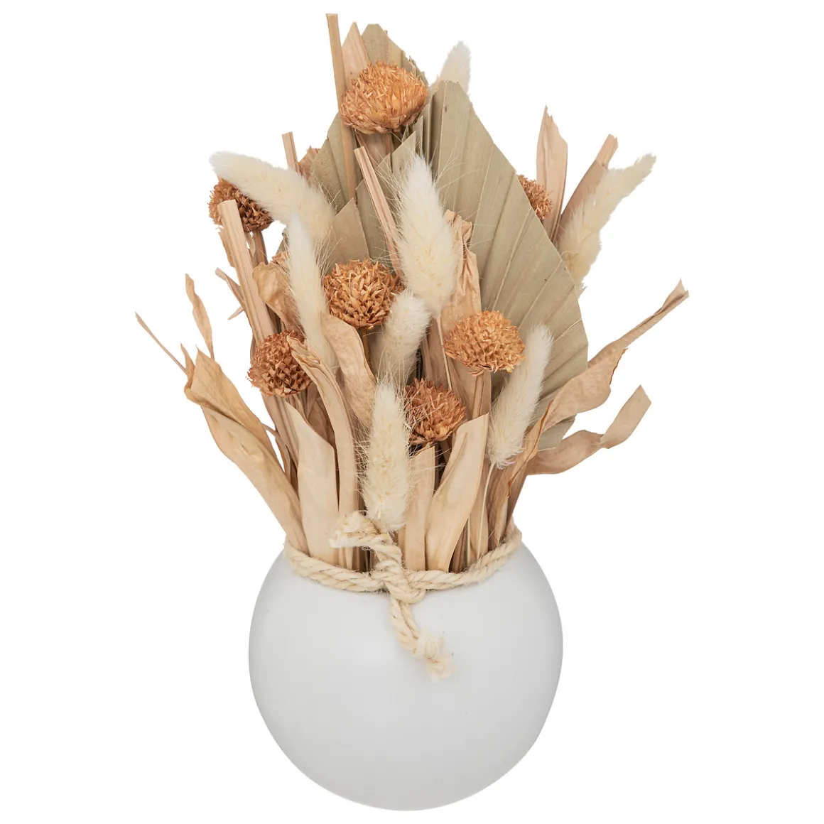 Ces plantes séchées sont disposées dans un joli pot rond en céramique avec une cordelette. Les couleurs douces de l’ensemble sont propices à l’évasion et au bien-être. Cet objet déco sera du plus bel effet dans une pièce au style ethnique chic.