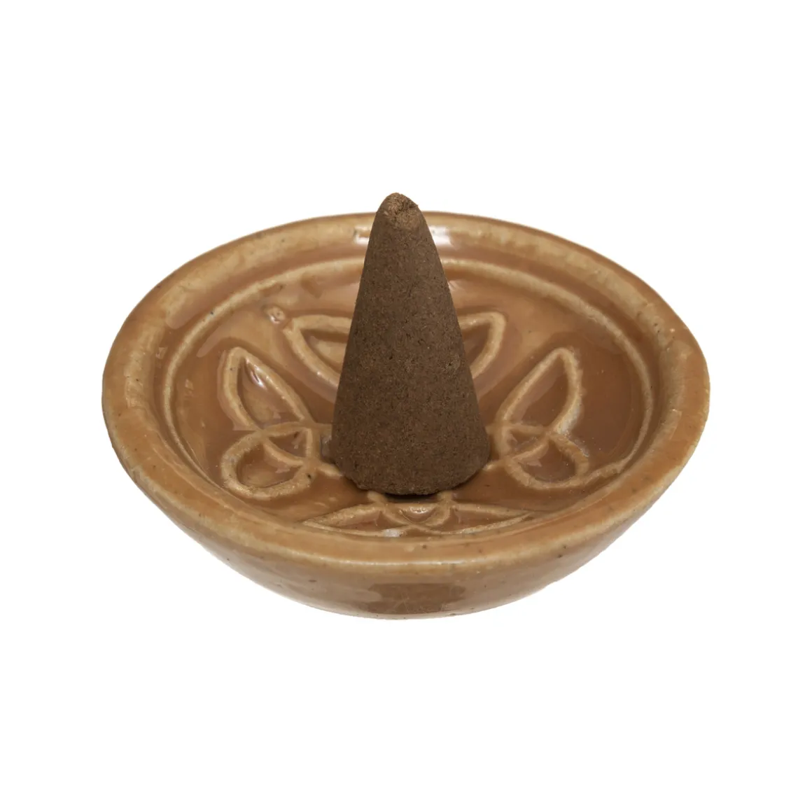 Ce cônes d’encens avec support est proposé dans un grand sachet en papier surmonté d’un pompon et contient 30 cônes d’encens. Un support en céramique réalisé en grès vous permettra de savourer des senteurs fleuries et exotiques. Profitez d’une ambiance relaxante et évadez-vous dans votre salon!