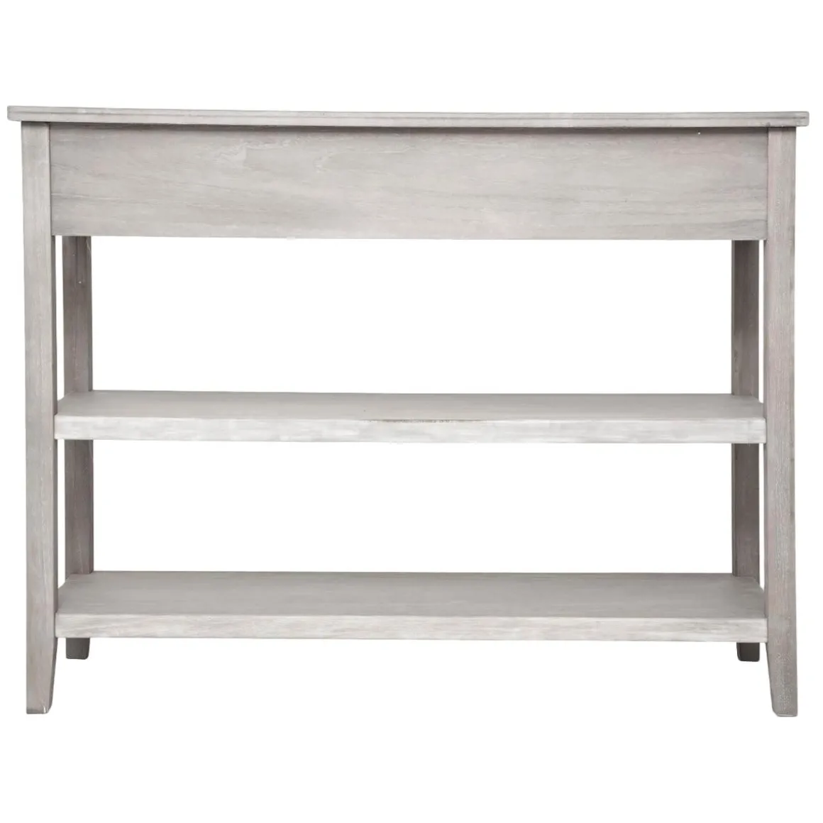 Cette console se distingue par sa finition cérusée au coloris très doux. Elle convient aussi bien à un décor bohème que campagne chic. Ses pieds sont en bois massif.