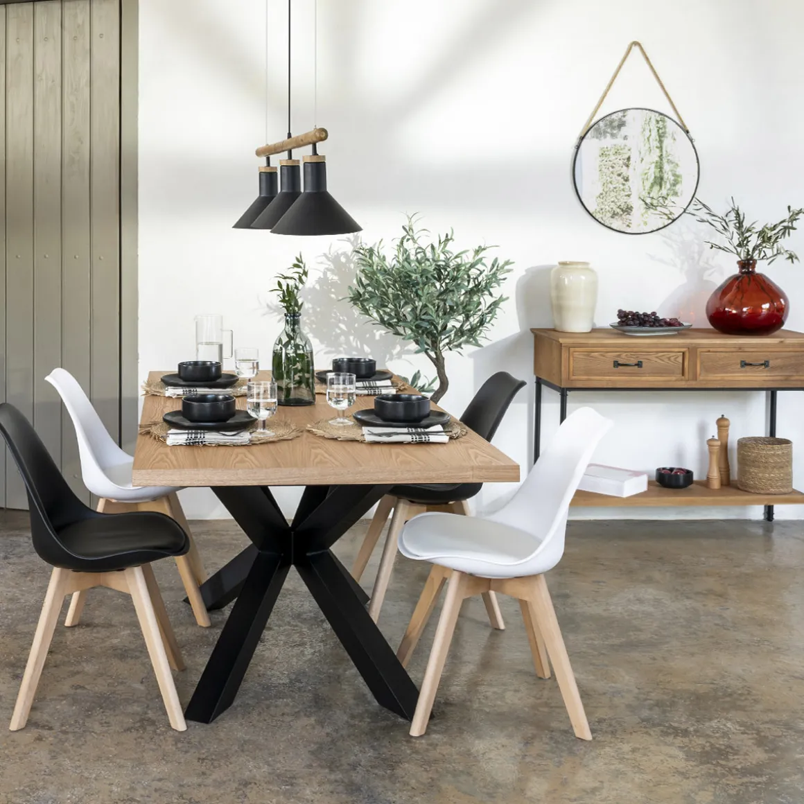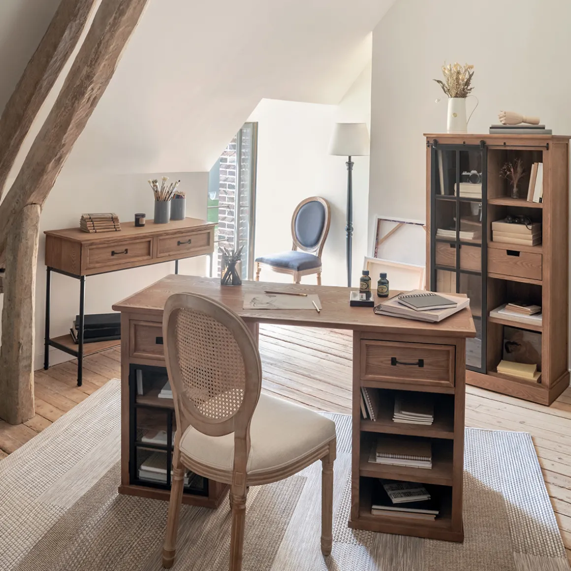 Cette console est en fibres de bois avec un placage en sapin. Dans un esprit authentique, les pieds et les poignées des deux tiroirs sont en métal. La console « Danik » vous permettra de ranger et d’exposer vos objets déco préférés.