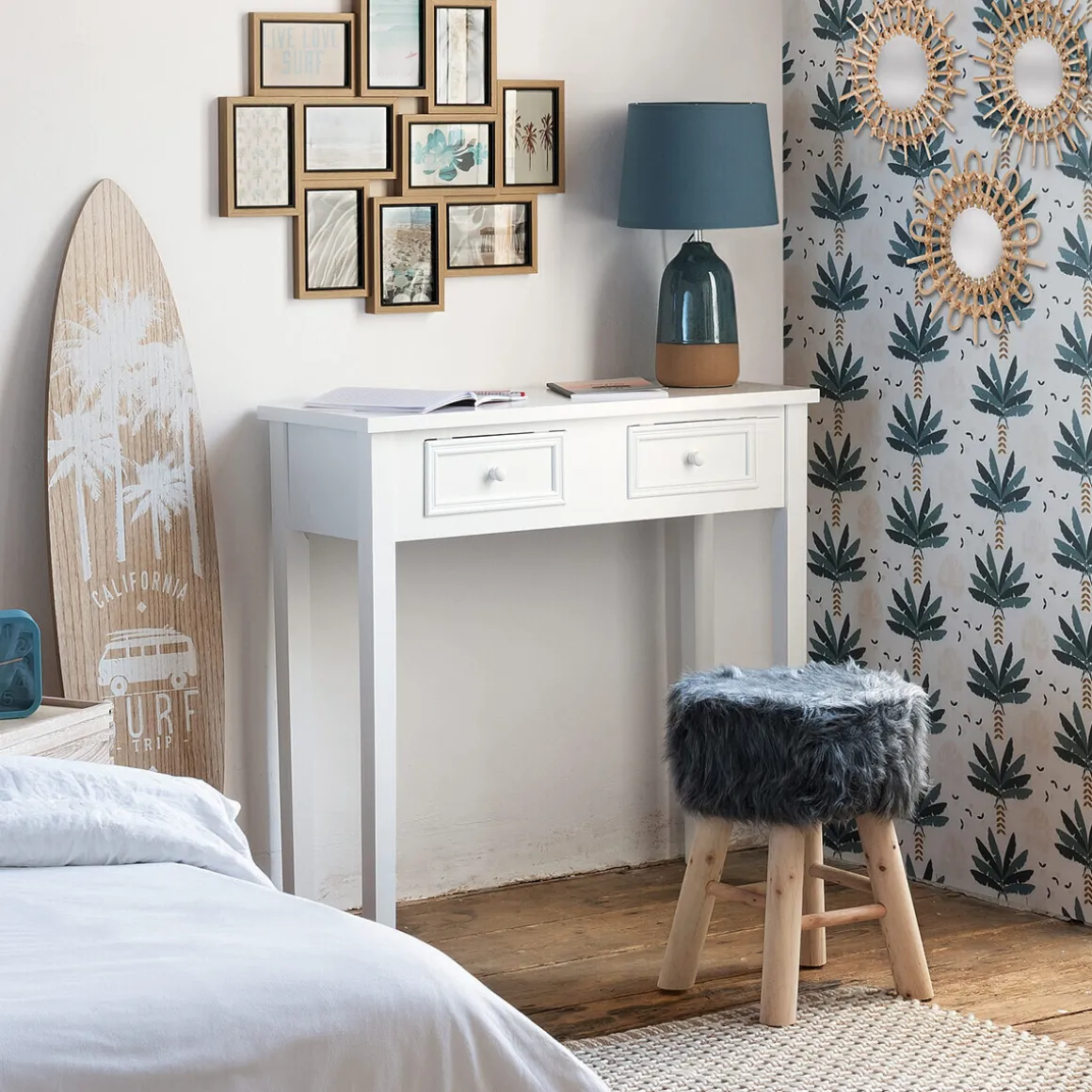 Déclinez l’usage de cette console et transformez la en coiffeuse en accrochant un miroir au mur juste au-dessus.