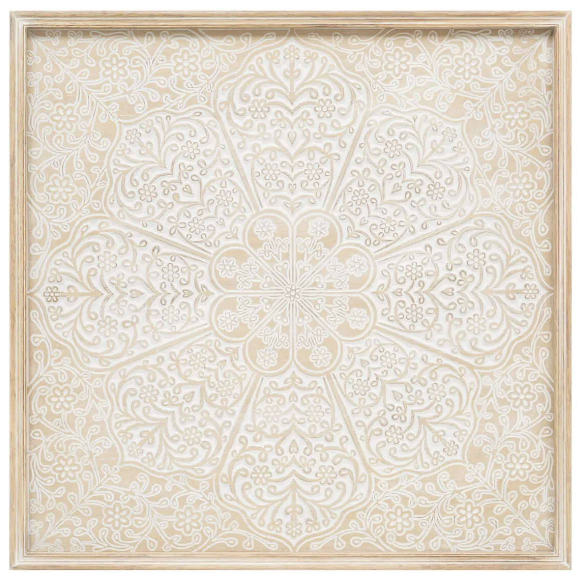 Réalisée à partir d’un cadre en bois d’hévéa, la déco murale « Timea » obéit à des dimensions carrées et trouvera sa place sur un mur, même dans un petit espace, pour créer une ambiance exotique.