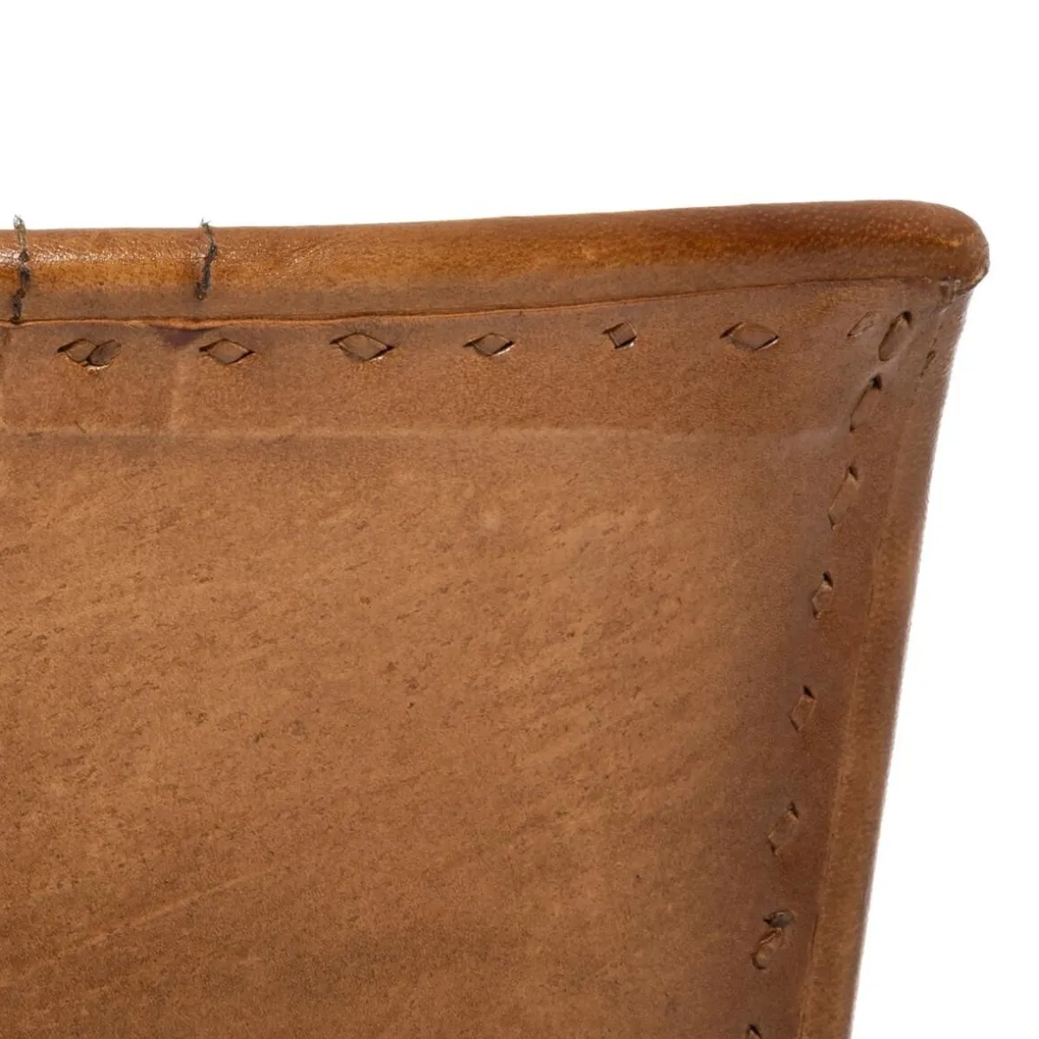 Le fauteuil en cuir « Hoper » séduit par ses lignes minimalistes et son design industriel. Monté sur des pieds en fer épurés, ce fauteuil comprend deux accoudoirs en bois de manguier. Le détail raffiné : les surpiqûres apparentes autour de l’assise et du dossier.