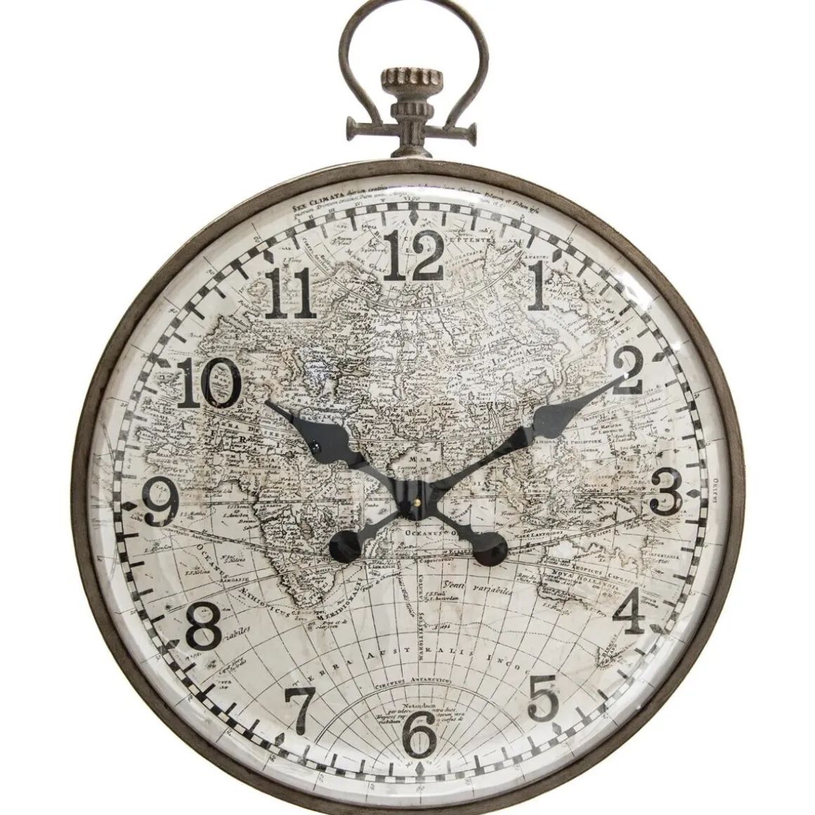 Inspirée des montres à gousset d’antan, cette horloge en métal et verre bombé apportera une touche intemporelle à votre décoration intérieure. La carte du monde imprimée sur son cadran est une invitation à l’évasion de l’esprit.