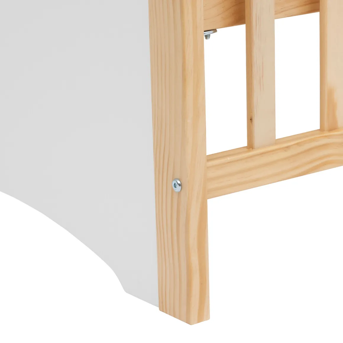 Sobre et épuré, ce lit pour bébé arbore une jolie structure bicolore en bois de pin à l’aspect brut. Son allure de maisonnette ajoutera de la fantaisie dans la chambre de votre bout de chou. De plus, la distance entre les barreaux garantit la sécurité de votre enfant.
