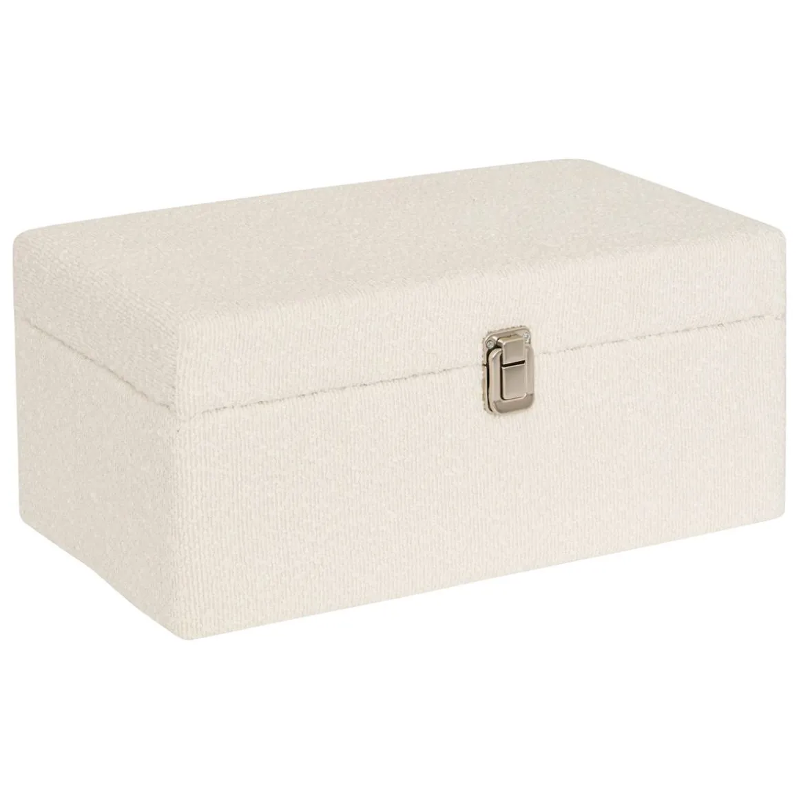 Le set de 3 malles Carlie Atmosphera est composé de 3 malles rectangulaires de dimensions différentes qui peuvent être empilées. Habillées de tissu bouclette, elles offrent un généreux volume de rangement, idéal pour stocker des effets, des accessoires ou du linge de maison comme des plaids ou des coussins. Installez ces malles dans une chambre à coucher pour créer une ambiance chaleureuse ou exposez-les dans une pièce de vie, associées à un tapis en coton et à du mobilier en bois clair. Harmonisez votre déco en choisissant des accessoires déco ou des assises en bouclette Atmosphera !