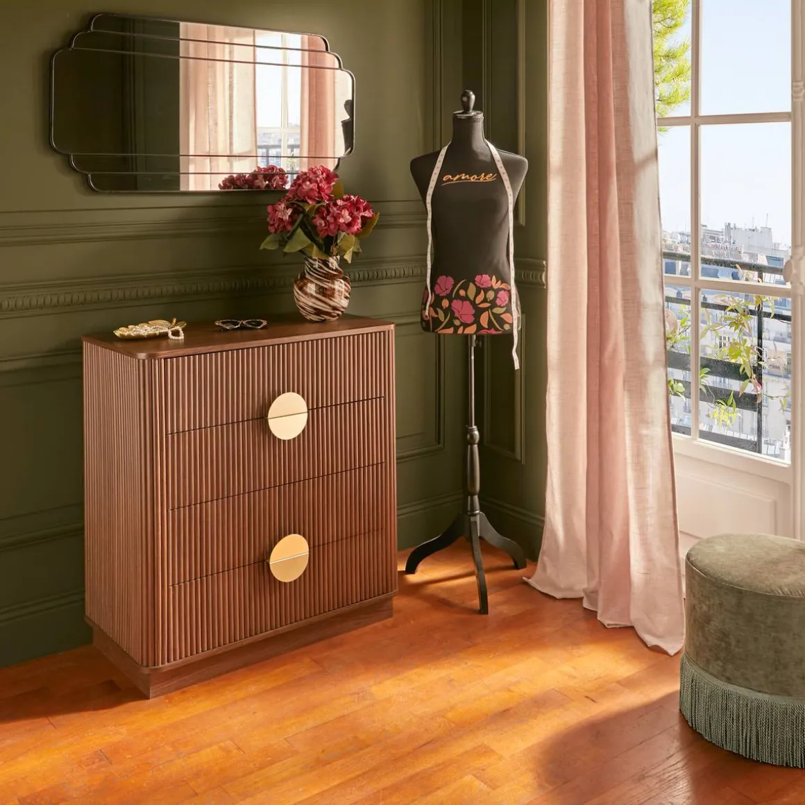 Monté sur un trépied en bois teinté, le mannequin Belli Atmosphera obéit à une hauteur généreuse de 1,60 m et le buste est entièrement tendu de tissu. Brodé d’un mot tendre et imprimé de motifs fleuris, imaginés par l’une de nos stylistes, il vous permettra de créer une ambiance féminine dans une chambre à coucher ou dans un dressing. Vous pourrez y suspendre vos sacs et chapeaux et l’entourer d’un vase garni de fleurs pour créer un rappel bucolique. Ajoutez un fauteuil Atmosphera en velours à ses côtés pour vous détendre dans un coin confortable et convivial !