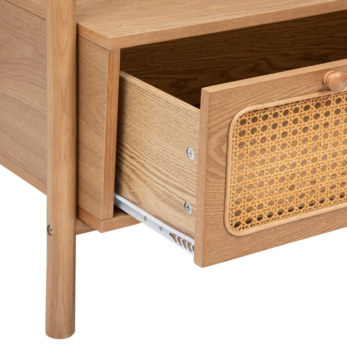 Réalisé en bois, le meuble d’entrée « Tiria » est équipé d’un large tiroir dont la façade est en cannage de rotin. Parfait pour ranger accessoires ou chaussures, il est surmonté dune tringle qui vous permettra de suspendre vestes et manteaux.