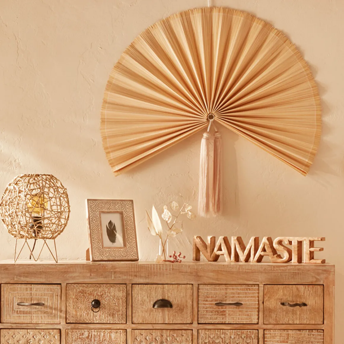 Placez votre mot à poser « Namaste » sur un grand buffet en bois de manguier Atmosphera, disposez quelques bougies et savourez une ambiance propice à l’évasion.