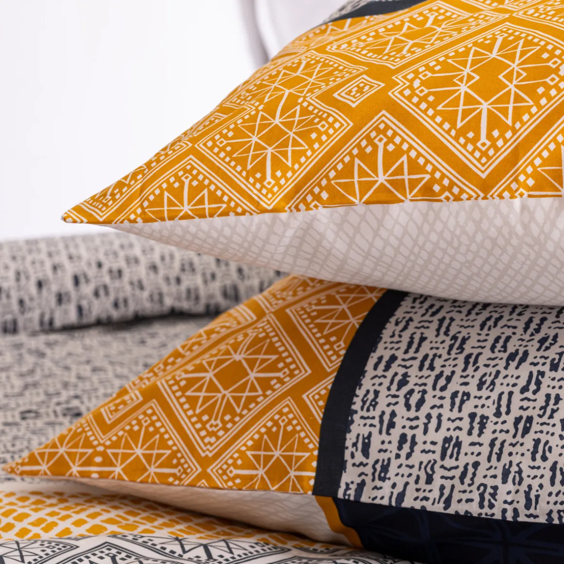 Passez une bonne nuit de sommeil en vous lovant dans cette parure de lit « Etnik » deux personnes. Elle est composée d’une housse de couette réversible 2 personnes et de 2 taies d’oreiller carrées. En coton tissé 57 fils, dotée d’une fermeture à boutons, la parure de lit « Etnik » conjugue confort et durabilité.