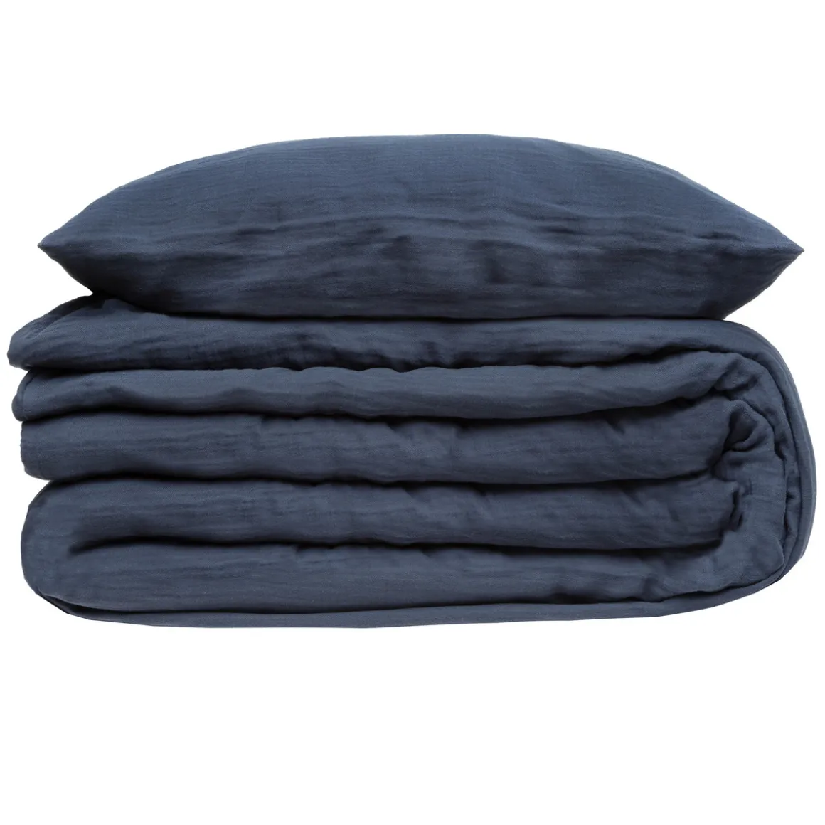 Cette parure en gaze de coton est unie et est composée de deux taies d’oreiller et d’une housse de couette. Facile à entretenir, elle est lavable en machine et se mariera avec tous les style d’intérieur.