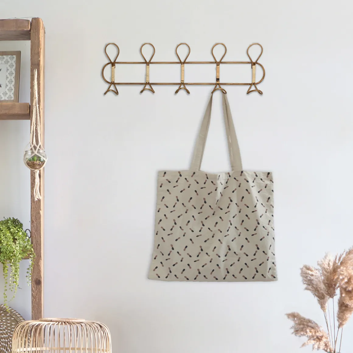 Équipée de 5 crochets, elle vous permettra de ne rien laisser traîner pour une entrée toujours bien rangée. Le métal effet rotin qui compose cette patère amènera de la couleur à votre intérieur, et les lanières en rotin apporteront une dose de relief et de nature.