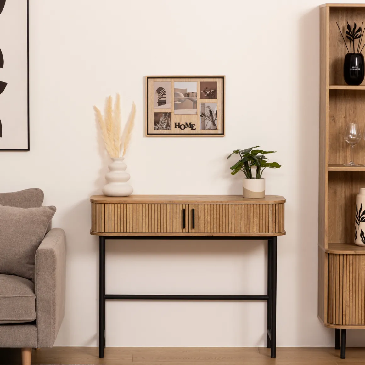 Suspendez votre pêle-mêle « Ewen » au-dessus d’une console en bois Atmospheraet profitez d’un intérieur chaleureux.