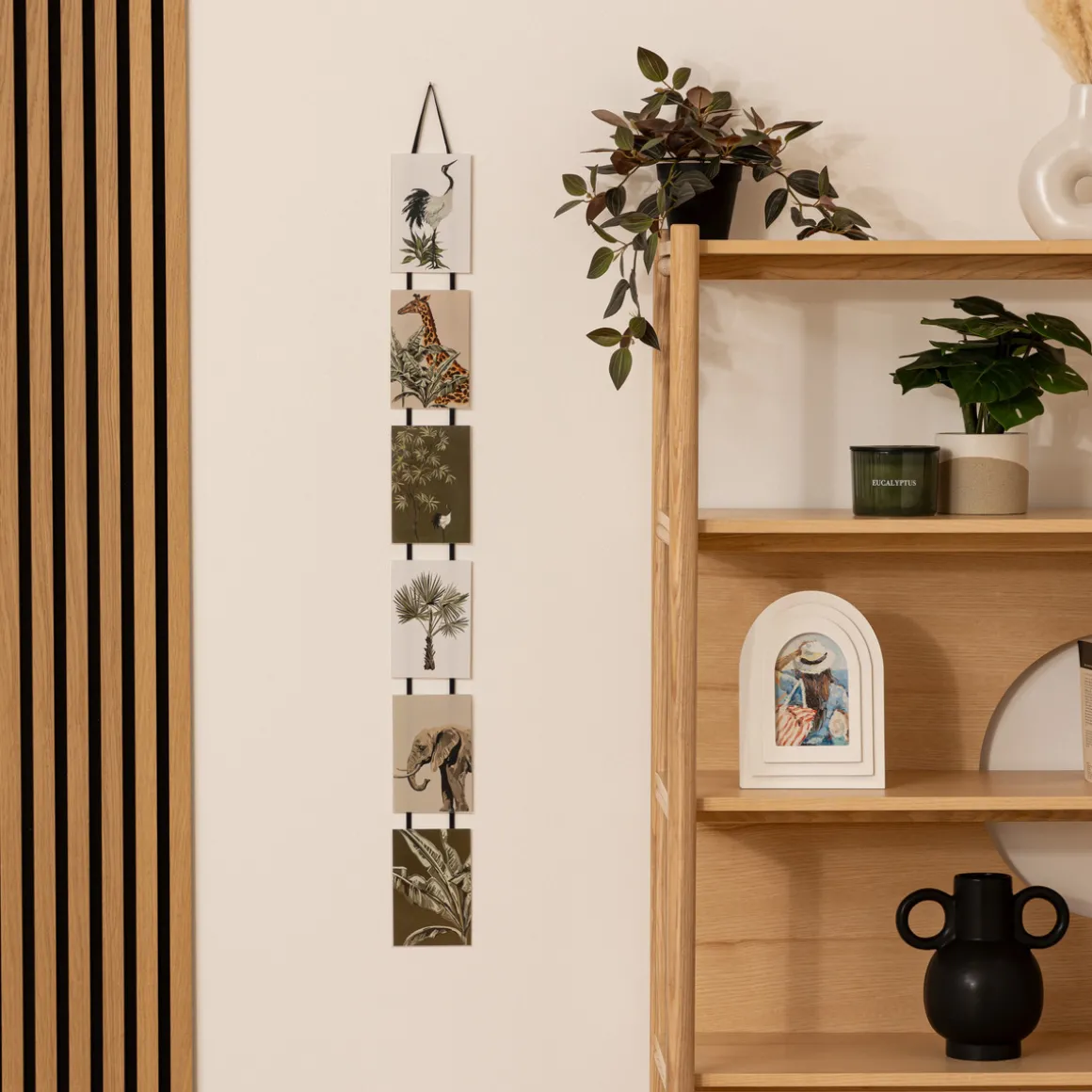 Ce cadre photo pêle-mêle se caractérise par sa simplicité qui mettra parfaitement en valeur vos souvenirs. Cet ensemble est composé de six cadres suspendus à la verticale par une corde. Pour l’installer, il suffit de l’accrocher à un clou.