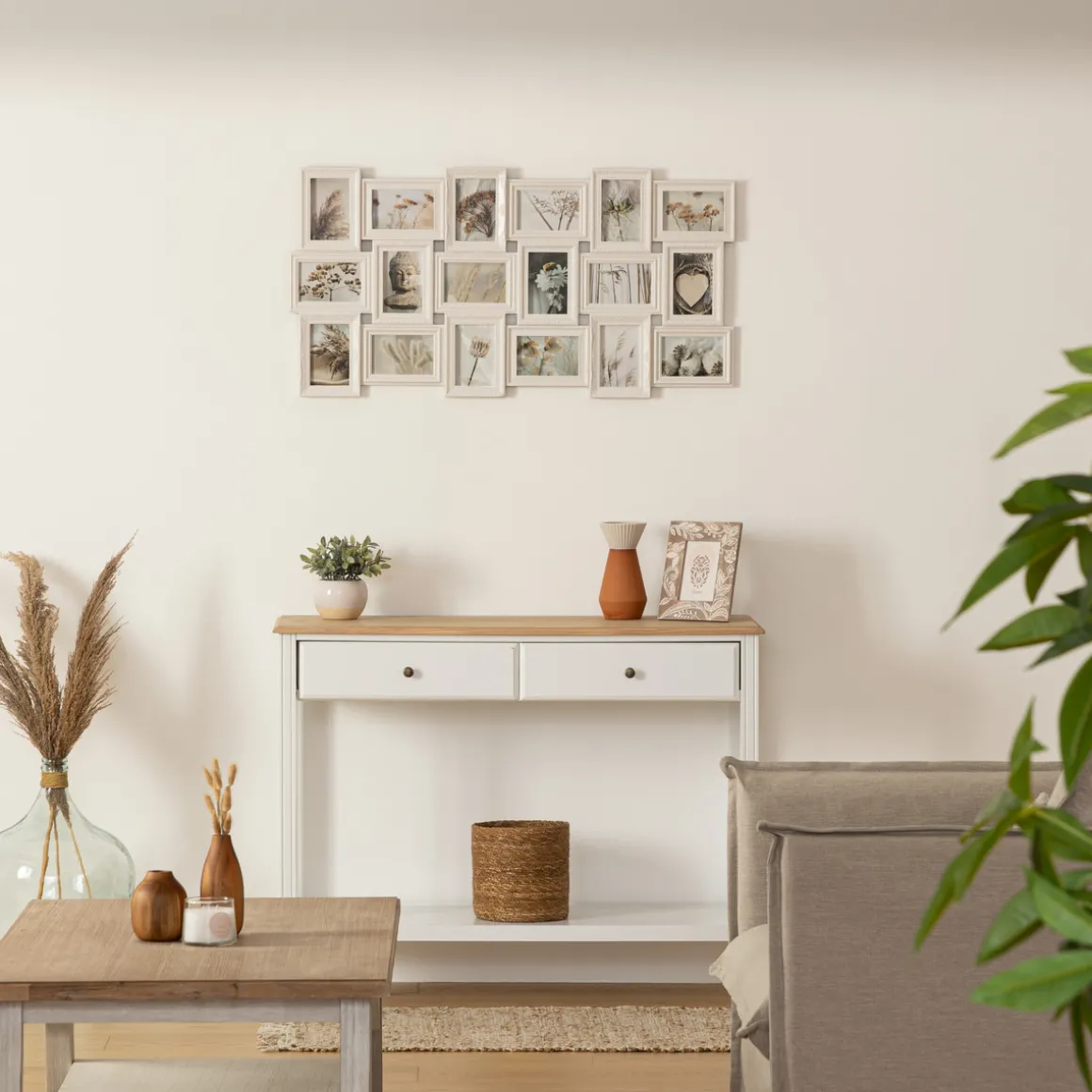 Installez votre pêle-mêle « suzy »au-dessus d’un buffet en bois blanchi Atmosphera et appréciez une ambiance conviviale.