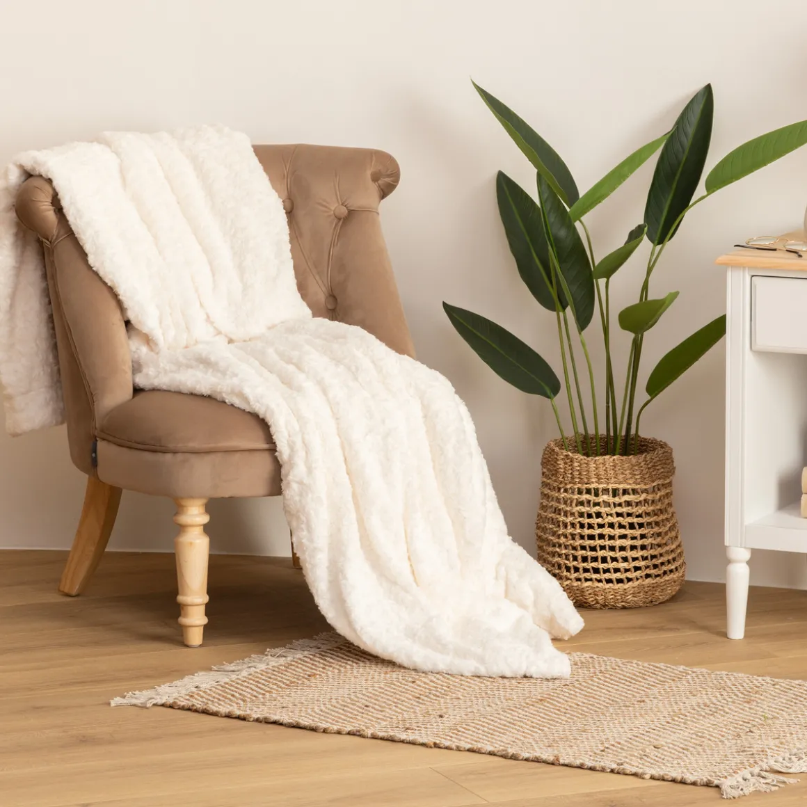 La douceur et les dimensions généreuses du plaid « Bouclette » Atmosphera apporteront convivialité et chaleur à votre intérieur. Disposez-le dans votre salon, sur un canapé scandinave ou dans votre chambre, sur un fauteuil à bascule, pour vous emmitoufler à tout moment.