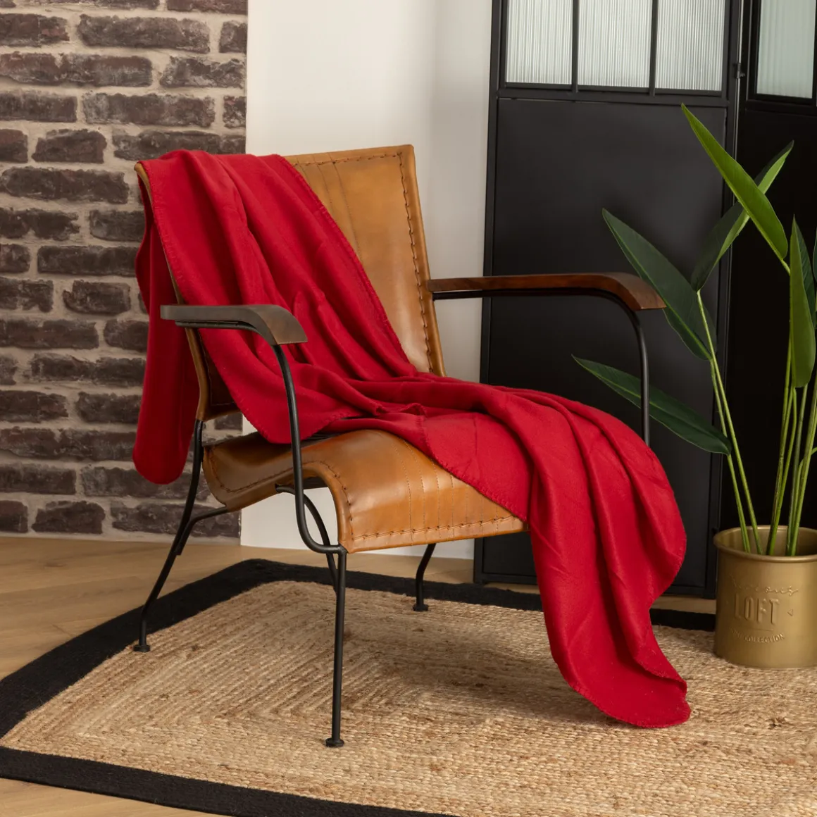 Installez votre plaid polaire sur un fauteuil club en cuir Atmospheraet profitez d’un mix de matières dans votre pièce.