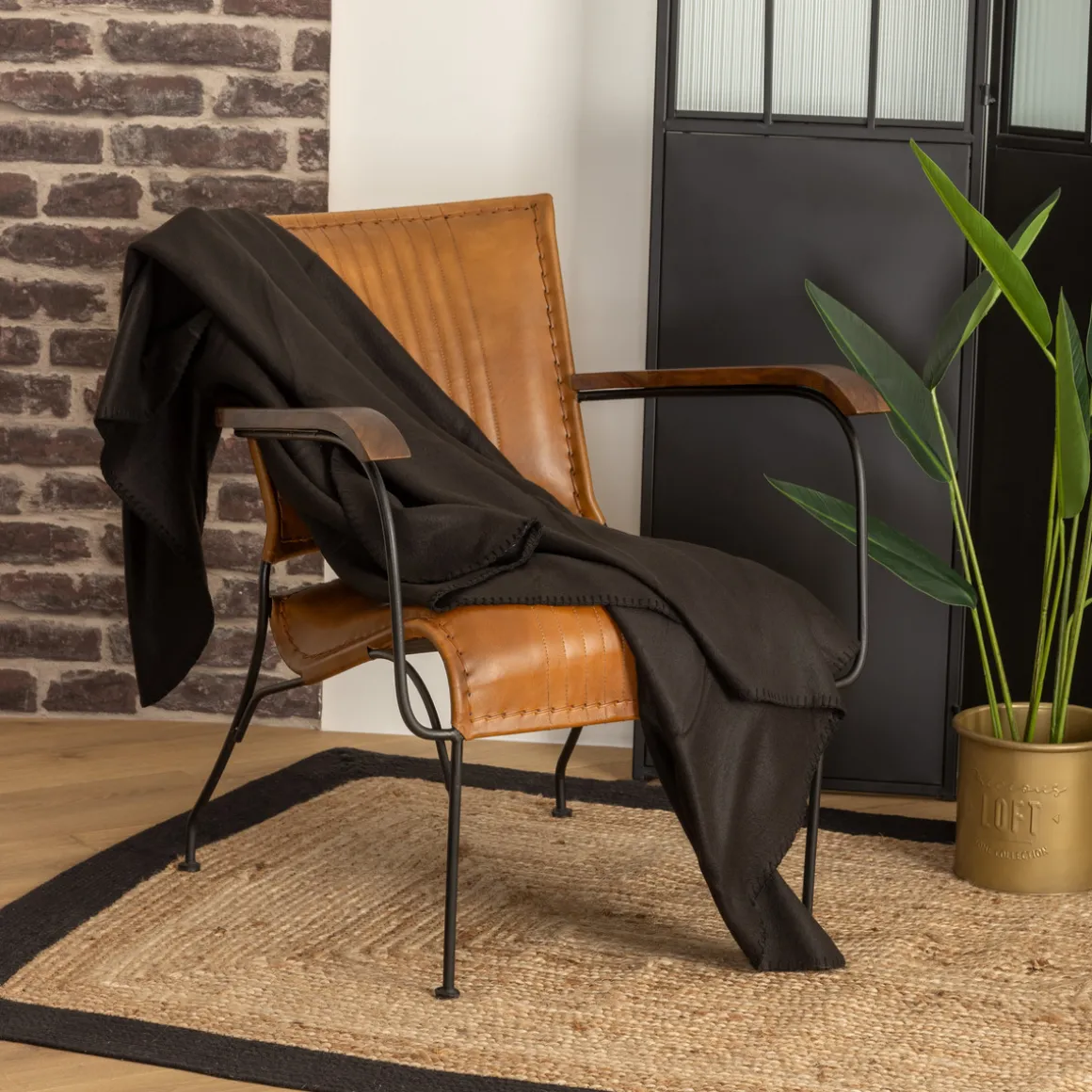 Installez votre plaid polaire sur un fauteuil club en cuir Atmospheraet profitez d’un mix de matières dans votre pièce.