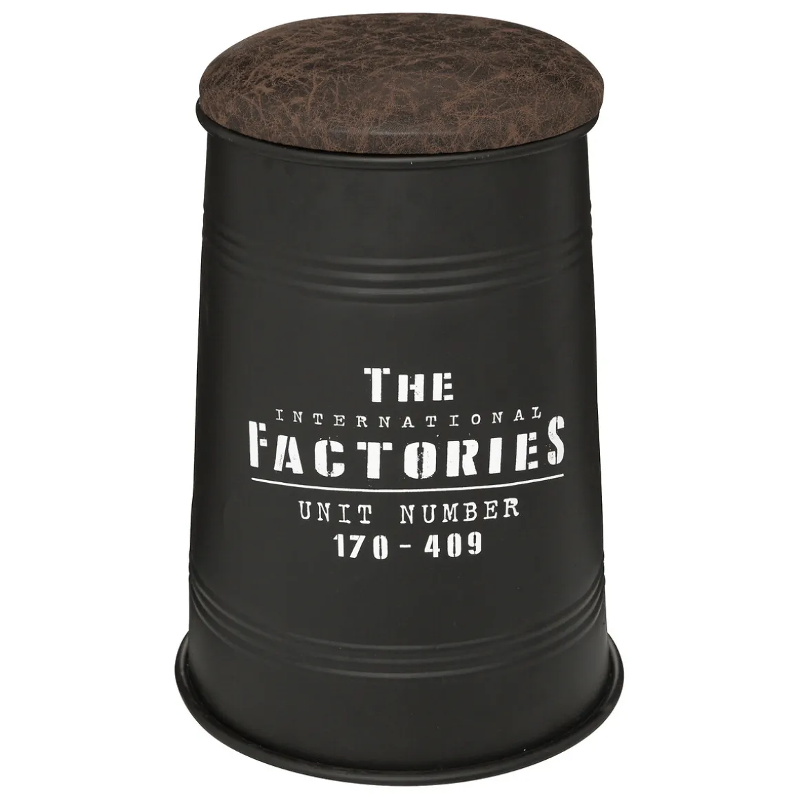 Réalisé à partir d’un bidon cylindrique en acier, le pouf « Joao » est doté d’une assise rembourrée et amovible qui ouvre sur un espace de rangement. Peint dans un ton mat et décoré d’inscriptions au style vintage, il vous permettra de ranger des plaids ou de faire ponctuellement place nette dans votre intérieur. L’assise confortable imite le cuir vieilli.