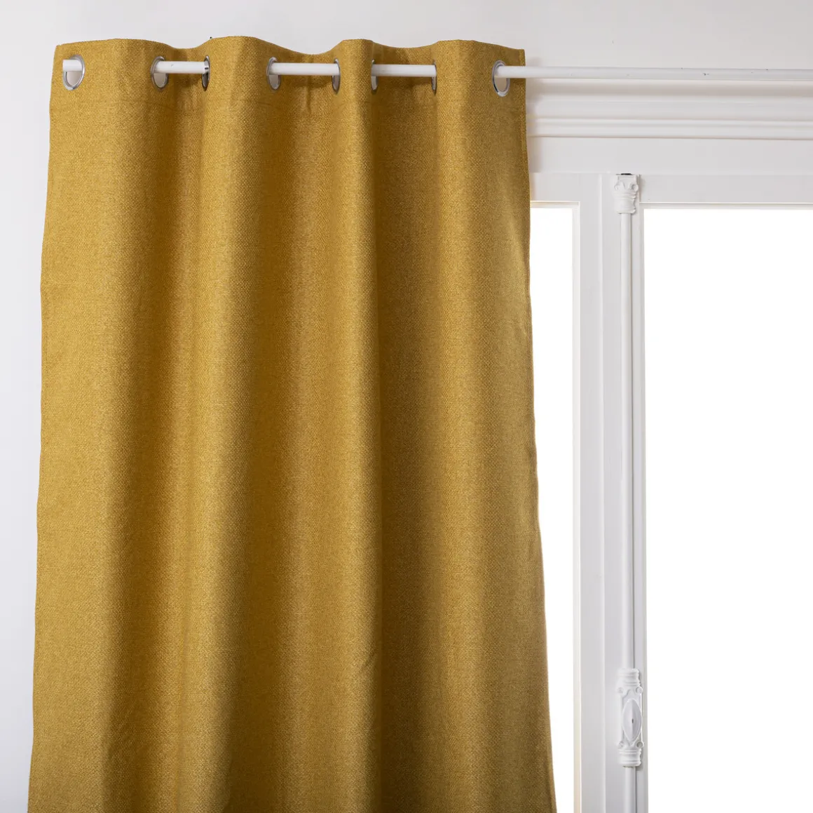 Réalisé dans un épais tissage, ce rideau occultant vous permettra de protéger une pièce de la lumière du jour. Doté d’oeillets métalliques permettant de le glisser facilement sur une tringle, il habillera une fenêtre de format standard et peut être lavé en machine.