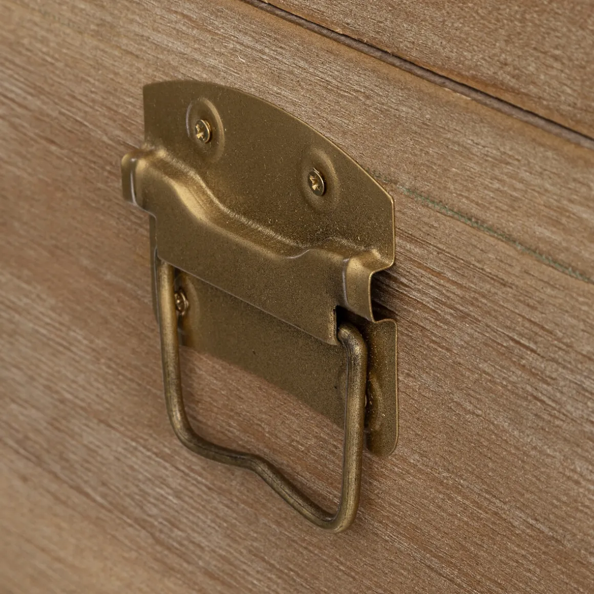 Ce set « Jiling » est composé de 3 malles rectangulaires en bois clair de tailles différentes, que vous pourrez empiler. Elles se distinguent par leurs détails en ferronnerie qui ajoutent une touche exotique à l’ensemble.