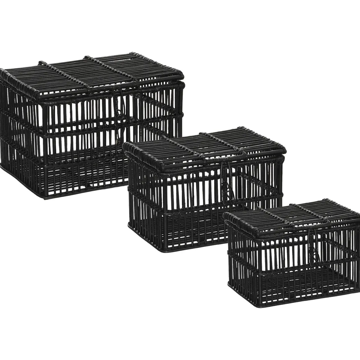 Ce set est composé de 3 malles rectangulaires de formats différents, que vous pourrez empiler ou dépareiller. Réalisées en rotin et teintées, elles déposeront une note poétique dans votre univers.