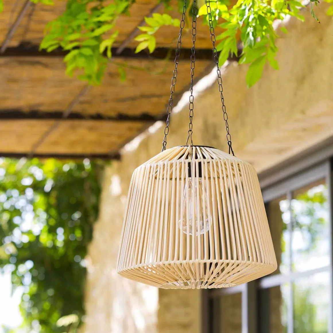 La suspension outdoor « Jily » est composée d’un abat-jour cage en tressage imitant le rotin qui accueillera l’ampoule de votre choix. Alimentée par un petit panneau solaire, vous n’aurez pas besoin de la brancher!