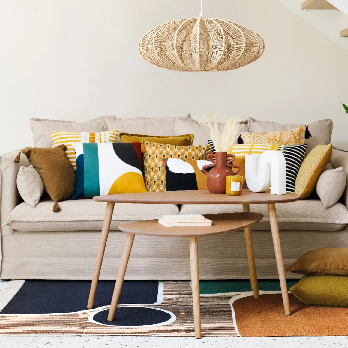 Créez un coin cosy chez vous en disposant cette suspension au-dessus d’un tapis et d’une table basse Atmosphera.