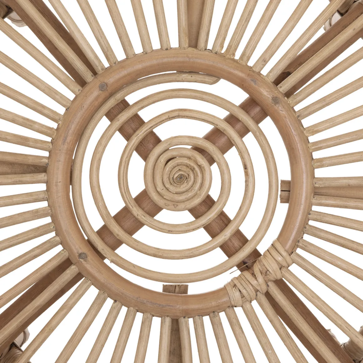 Cette table basse est entièrement en rotin, une matière légère et résistante. Ses jolies courbes et son aspect artisanal lui donnent beaucoup de douceur. Le design original et élégant de ce meuble invite à l’évasion depuis la maison.