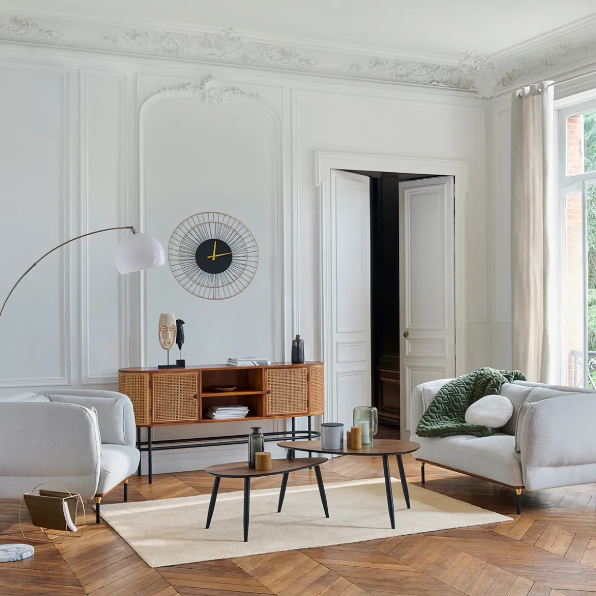 Pour un salon d’inspiration Art déco, associez ce tapis à un canapé en velours Atmosphera.