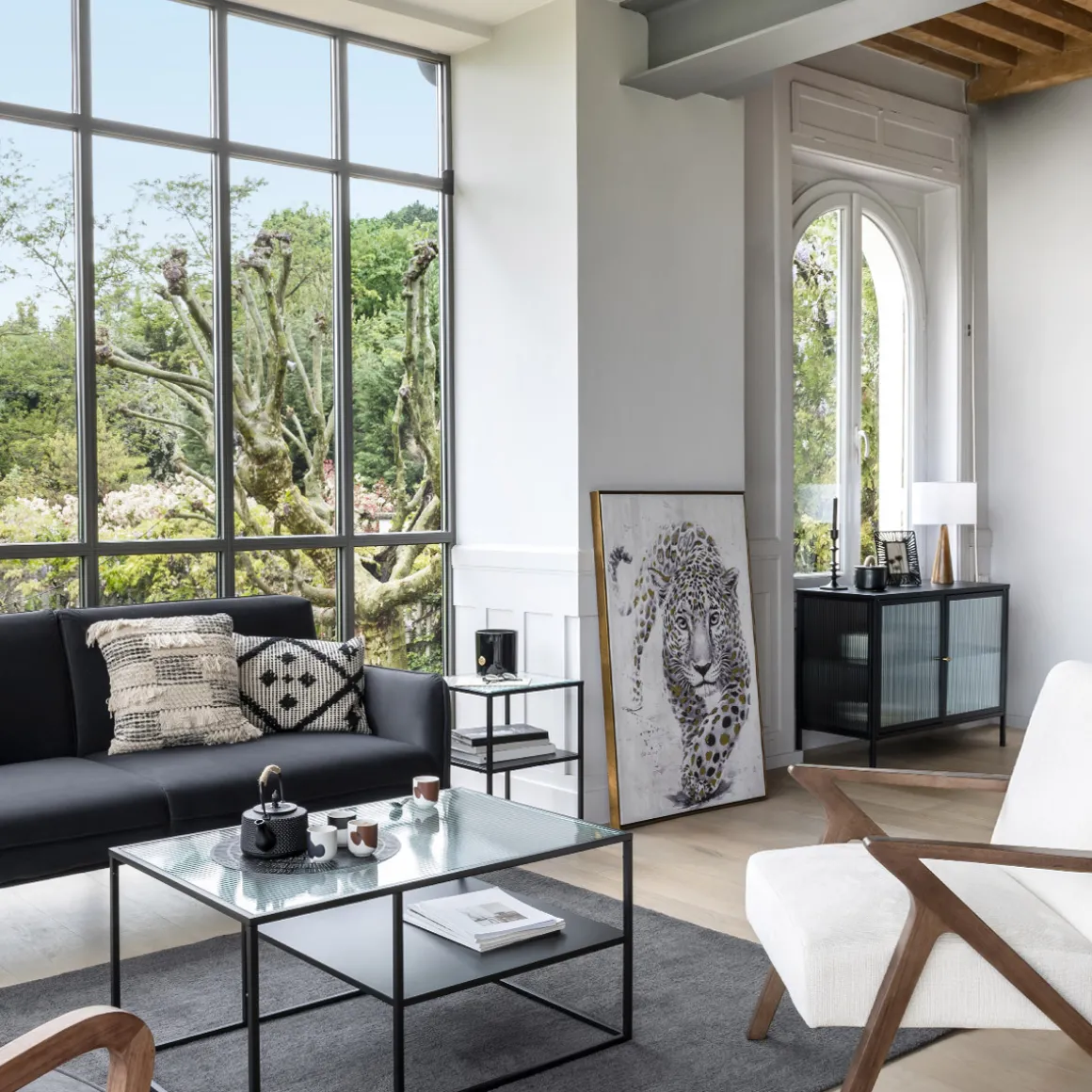 On associera cette toile à une petite étagère du même coloris et un fauteuil bergère en velours Atmosphera.