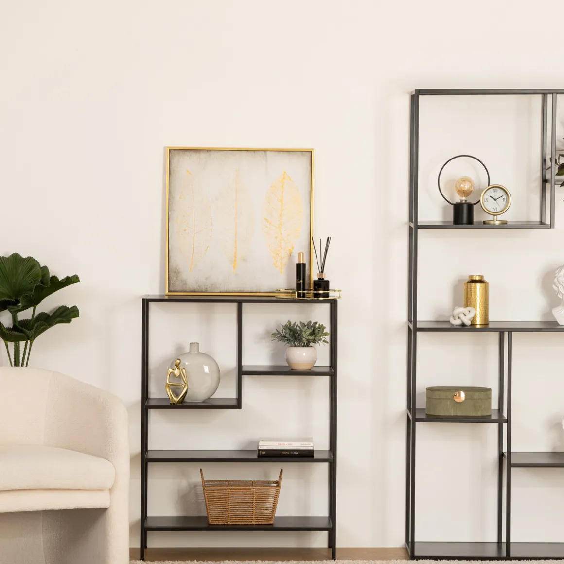 Que diriez-vous d’associer la toile imprimée « Plume » à une table basse ou une bibliothèque en bois Atmosphera ?