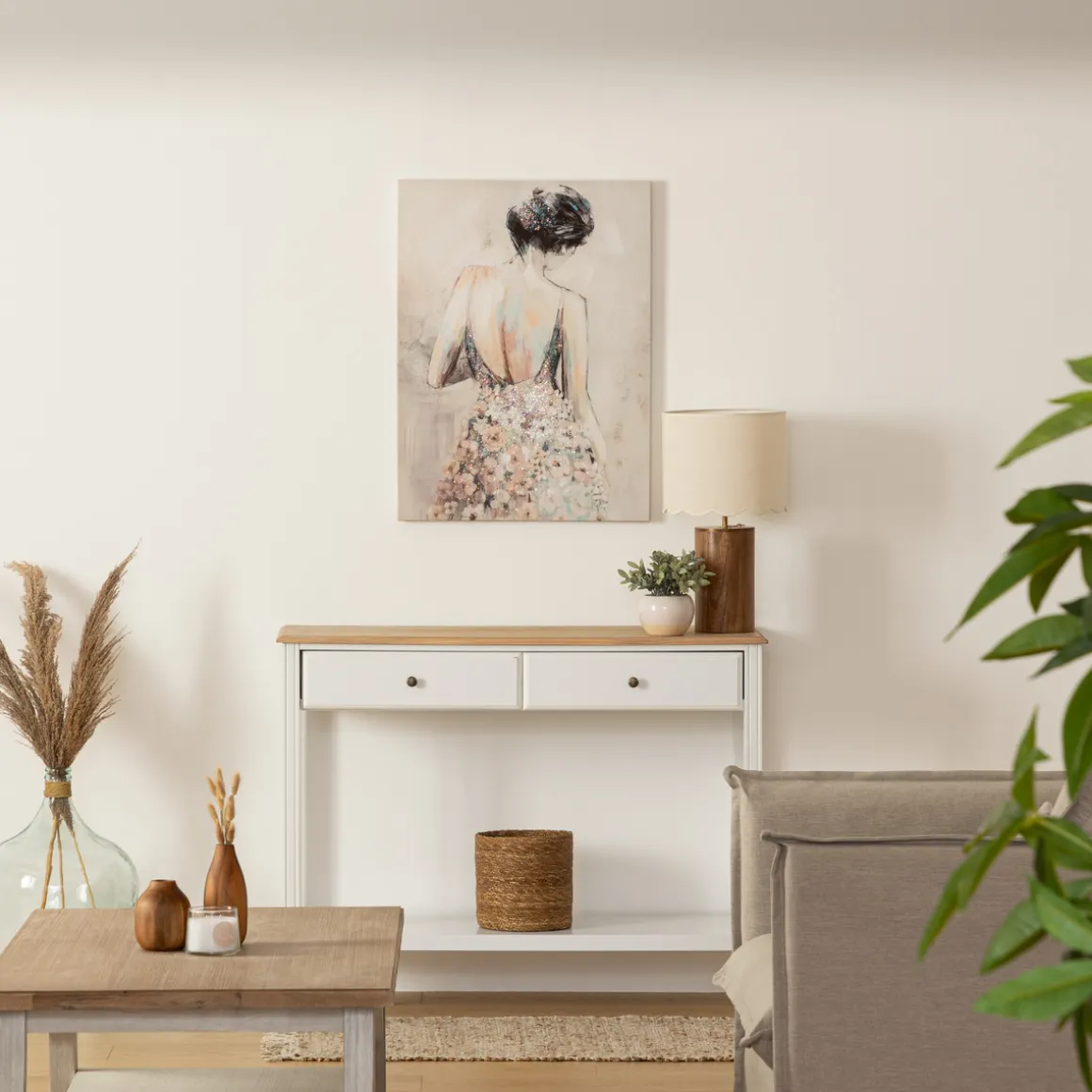 Fixez votre toile « Tiya » au-dessus d’une tête de lit en bois Atmosphera et profitez d’une ambiance chaleureuse dans votre déco.