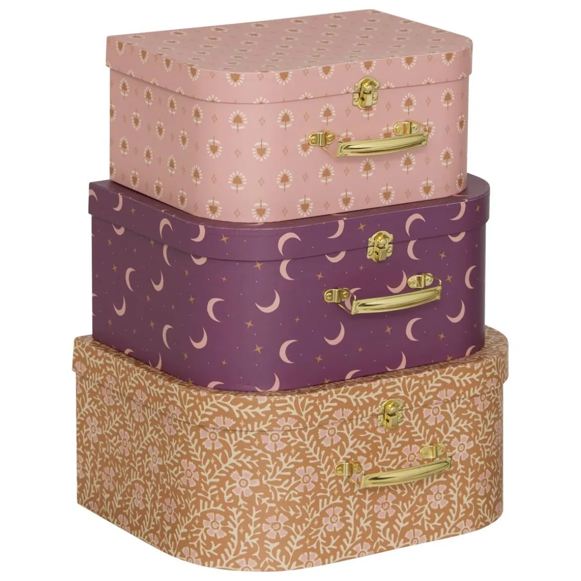 Très pratique pour organiser le rangement des jeux, jouets, poupées et figurines, le lot de 3 valisettes Bella Atmosphera for kids est composé de 3 valisettes de tailles différentes. Empilables, elles sont imprimées de motifs chaleureux et elles disposent de poignées de transport ainsi que de fermetures en métal. Pratiques pour déplacer ses trésors, elles trouveront volontiers leur place sur un meuble pour dégager de l’espace de jeu au sol.