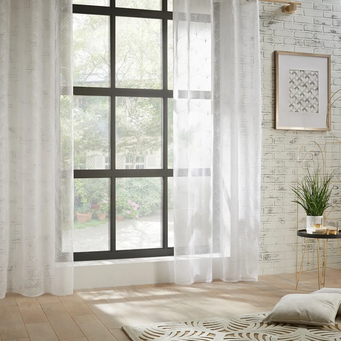 Si vous aimez le style Art déco, associez votre voilage « Mia » à des coussins en relief et des miroirs dorés.