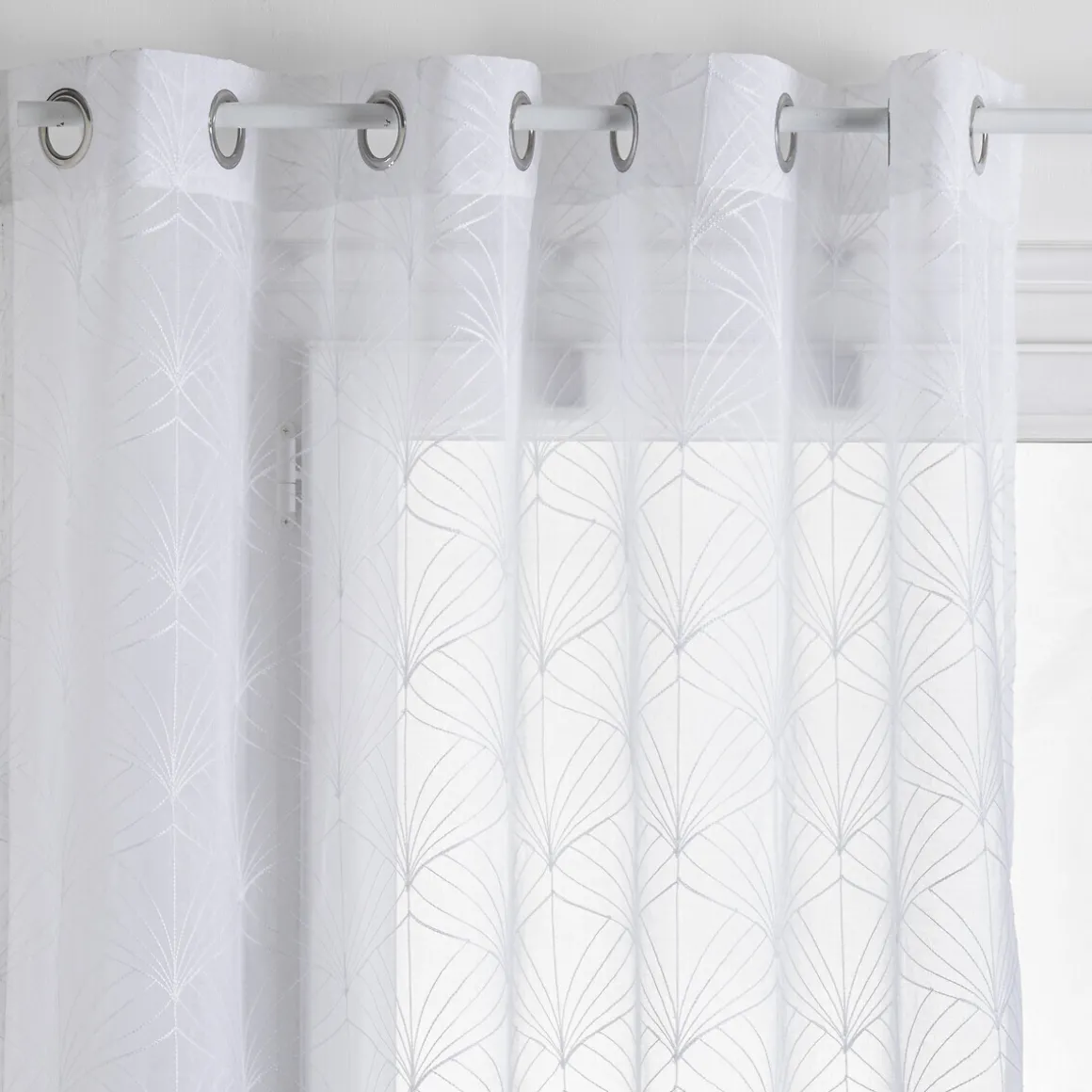 Craquez pour le voilage « Mia » qui apportera une touche moderne et élégante à vos fenêtres. Il se caractérise par de jolis motifs brodés. Ce voluptueux voilage vous protègera des regards indiscrets tout en laissant passer la lumière du jour. De plus, l’installation est rapide grâce aux oeillets en métal.