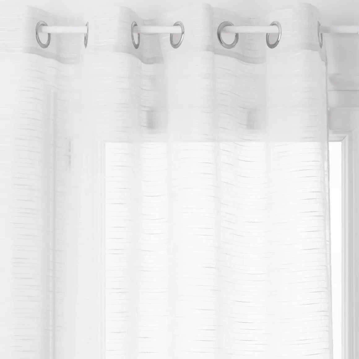 Ce voilage en polyester se caractérise par son tissu texturé et sobre. Il se lave très facilement en machine. Une fois installé à une tringle grâce aux oeillets, le voilage « Sam » habillera votre fenêtre avec élégance.