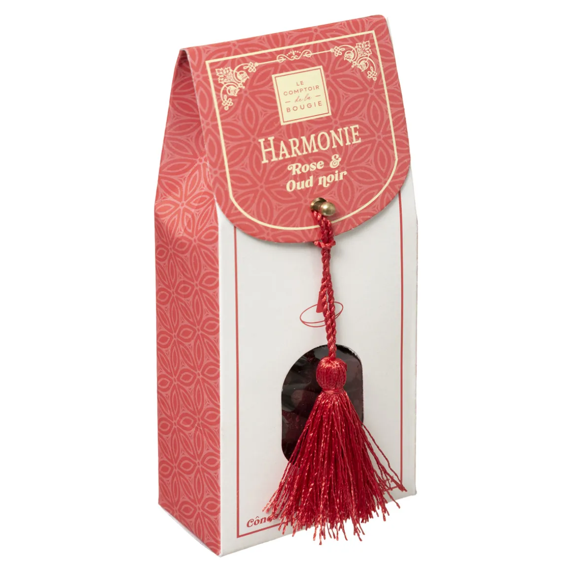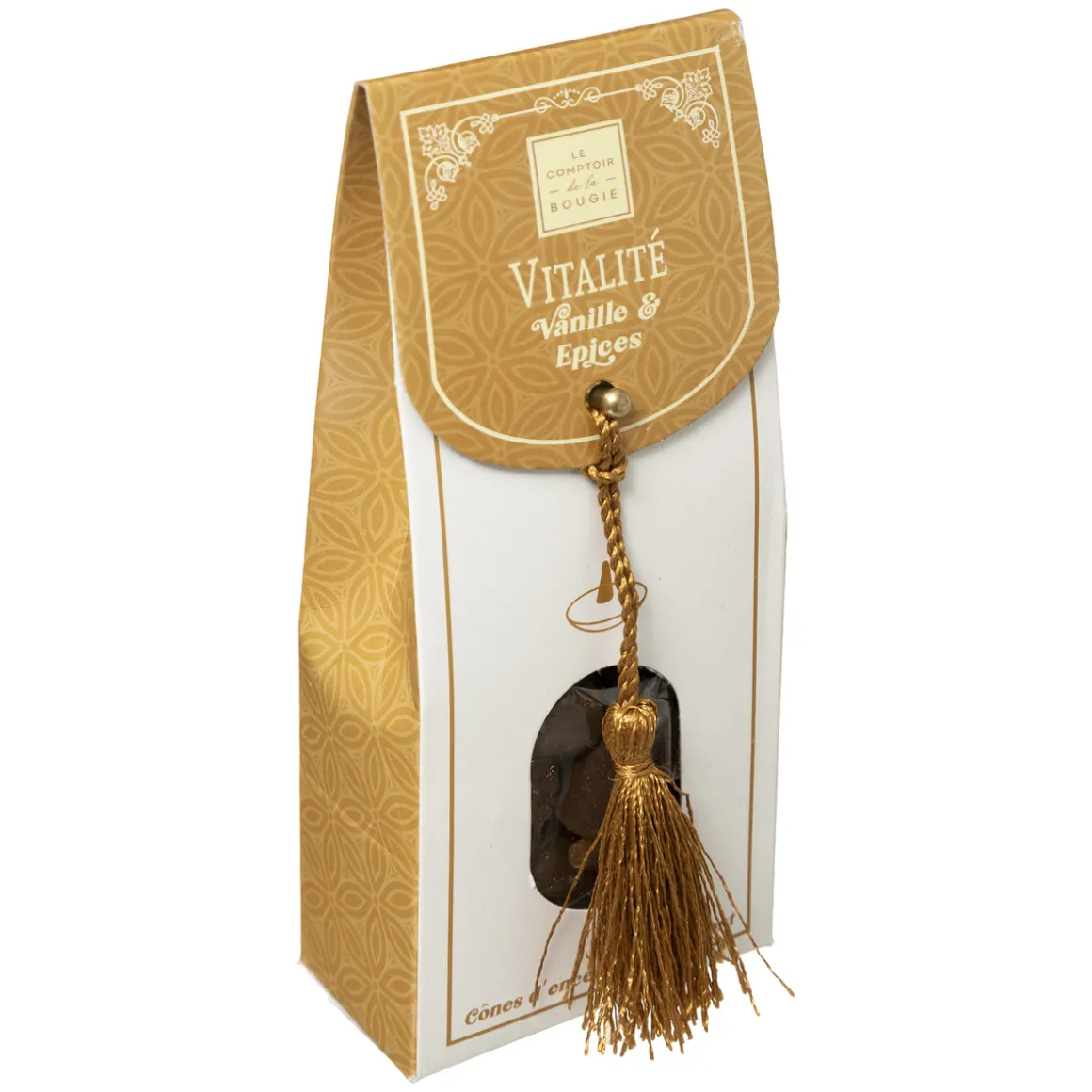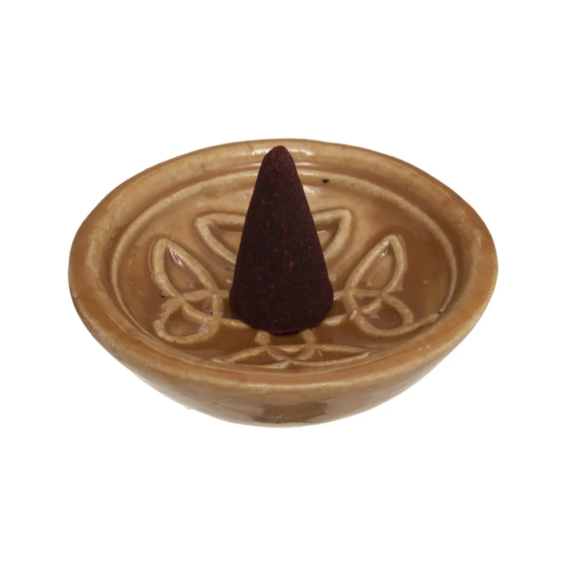 Ce cônes d’encens avec support est proposé dans un grand sachet en papier surmonté d’un pompon et contient 30 cônes d’encens. Un support en céramique réalisé en grès vous permettra de savourer des senteurs fleuries et exotiques. Profitez d’une ambiance relaxante et évadez-vous dans votre salon!
