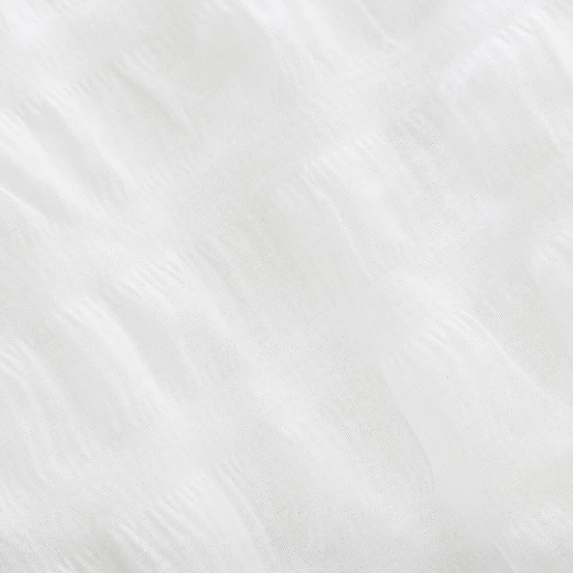 Conçu pour un grand lit deux personnes, cet ensemble comprend une housse de couette et deux taies d’oreiller carrées. Le tissu aérien est agrémenté de jolies rayures plissées. De plus, la parure de lit « Irhia » ne nécessite pas de repassage pour vous faciliter son entretien.