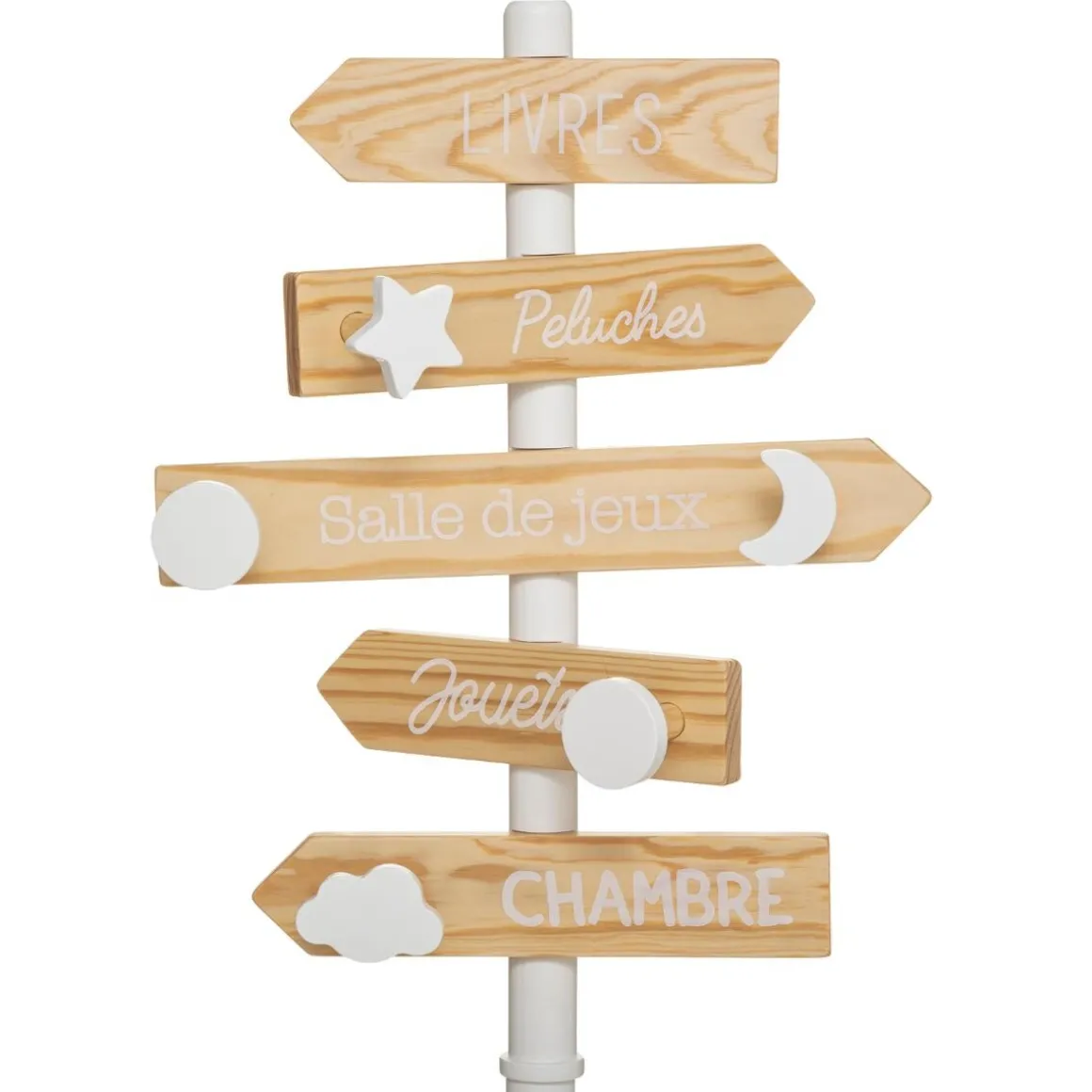 Grâce à son design amusant, votre bout de chou fera régner l’ordre en un clin d’oeil! Les patères en forme d’étoile, de lune ou encore de nuage accompagnent de jolies pancartes directionnelles qui seront une source inépuisable d’imagination pour votre enfant.