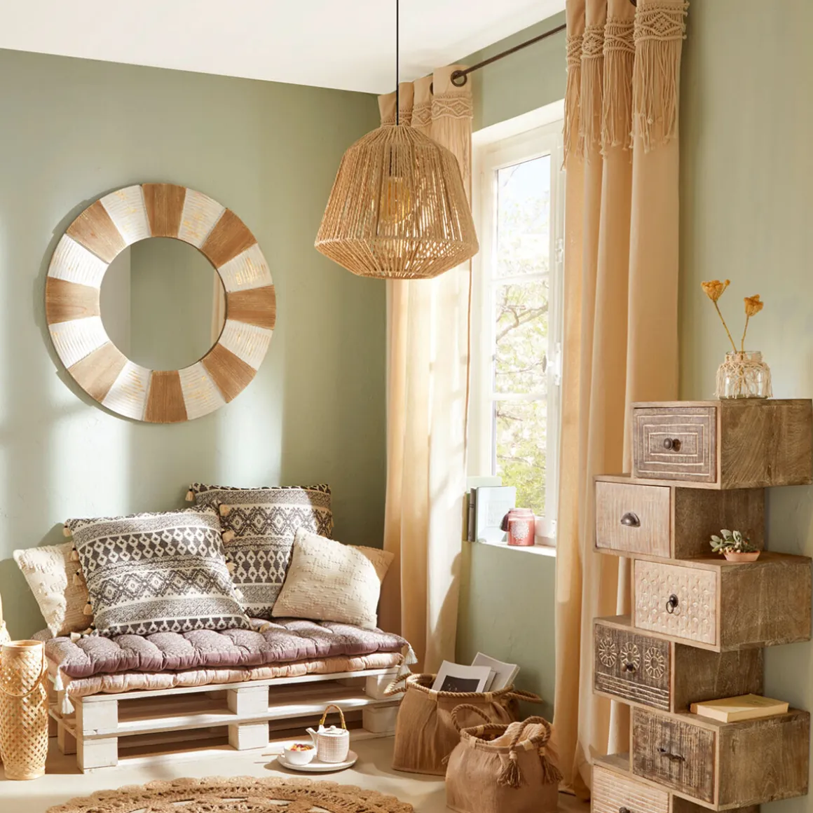 Associez votre rideau « Rituality » à une suspension en rotin Atmosphera pour créer une ambiance zen et chaleureuse dans votre pièce.