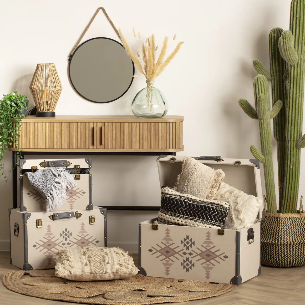 Posez votre vase au centre d’une table basse Atmosphera circulaire pour une harmonie des formes.